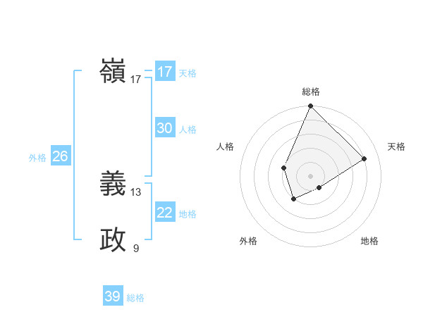 嶺 義政さんの天格は17画の4点!