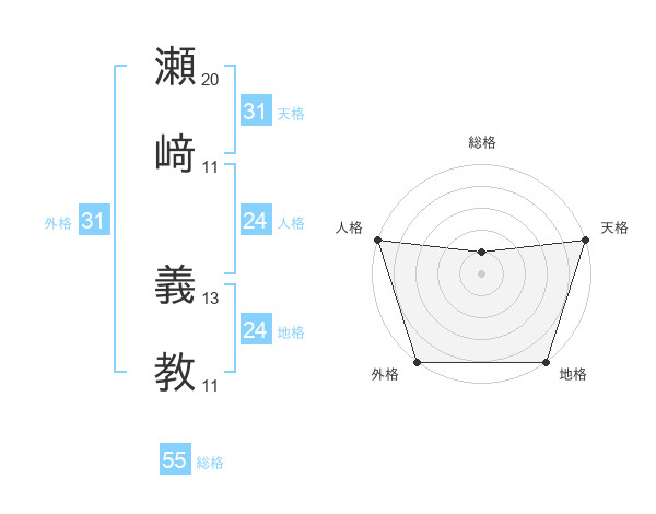 瀬﨑 義教さんを姓名の画数から五運を鑑定