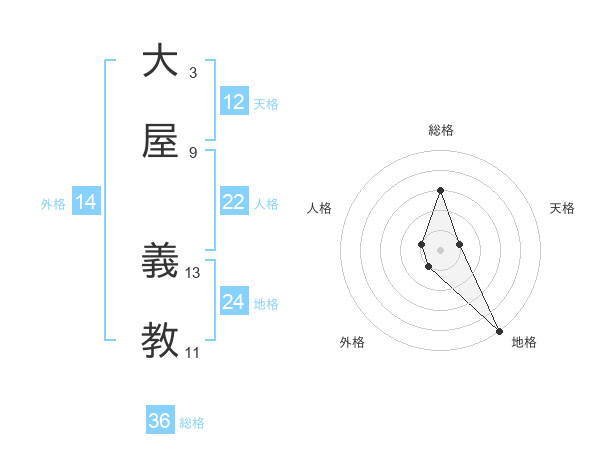 大屋 義教さんの地格は24画の5点!