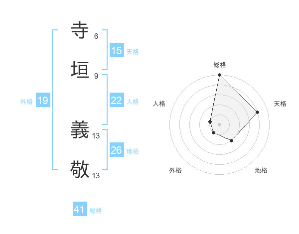寺垣 義敬さんを姓名の画数から五運を鑑定