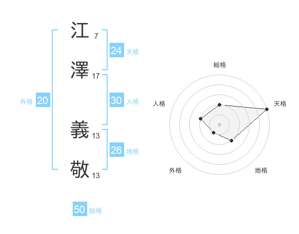 江澤 義敬さんを姓名の画数から五運を鑑定