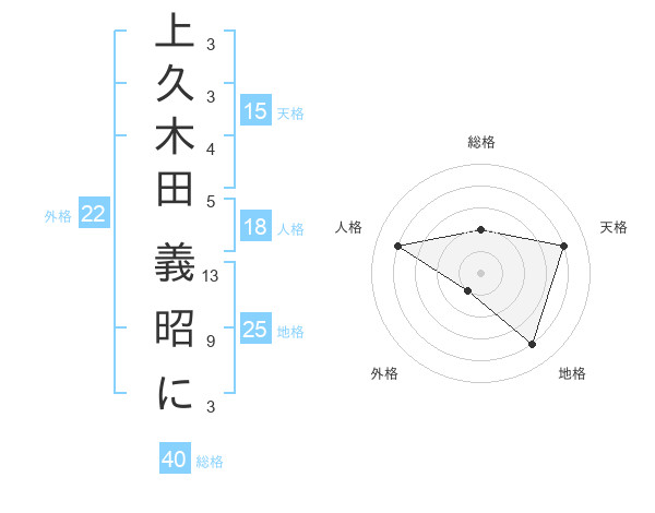 上久木田 義昭にさんを姓名の画数から五運を鑑定