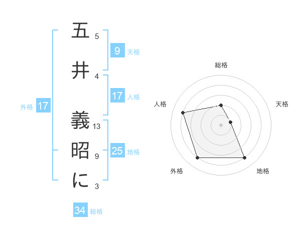 五井 義昭にさんの外格は17画の4点!