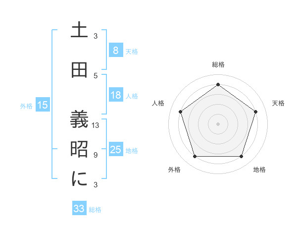 土田 義昭にさんを姓名の画数から五運を鑑定
