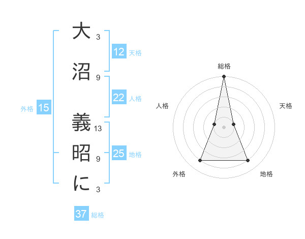大沼 義昭にさんを姓名の画数から五運を鑑定