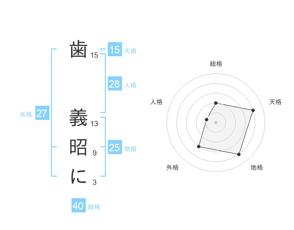 歯 義昭にさんを姓名の画数から五運を鑑定