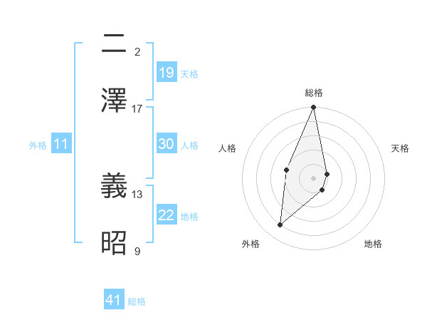 二澤 義昭さんを姓名の画数から五運を鑑定
