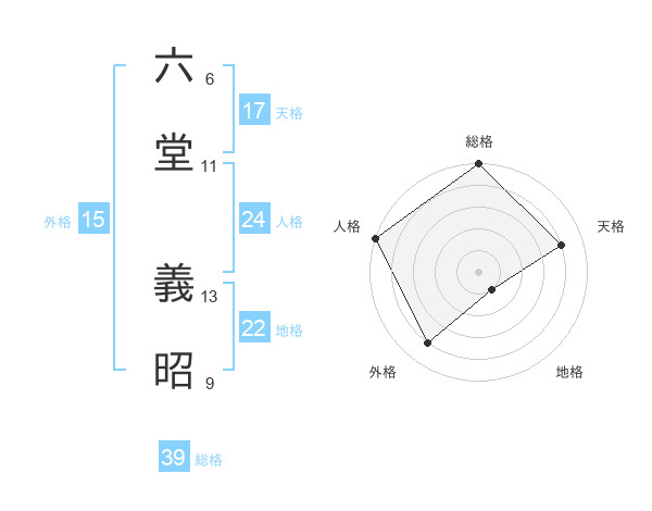 六堂 義昭さんを姓名の画数から五運を鑑定