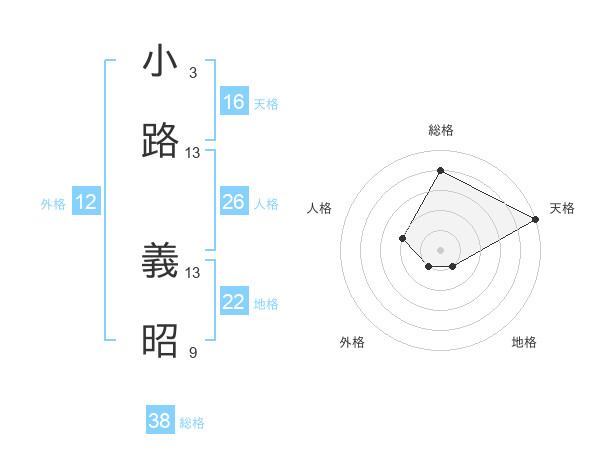 小路 義昭さんの総格は38画の4点!