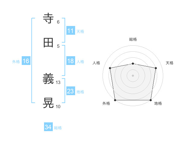 寺田 義晃さんの総格は34画の2点!