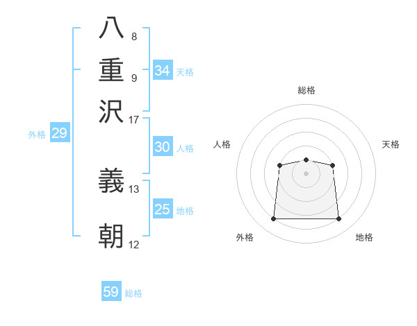 八重沢 義朝さんを姓名の画数から五運を鑑定