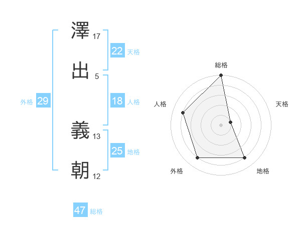澤出 義朝さんを姓名の画数から五運を鑑定