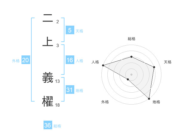 二上 義櫂さんを姓名の画数から五運を鑑定