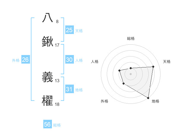 八鍬 義櫂さんの外格は26画の2点!