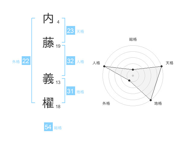 内藤 義櫂さんの外格は22画の1点!