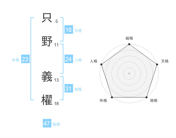 只野 義櫂さんの総格は47画の5点!