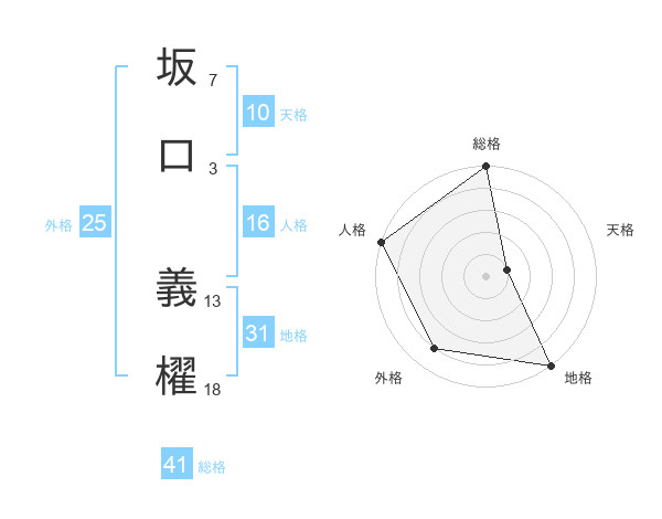 坂口 義櫂さんの地格は31画の5点!
