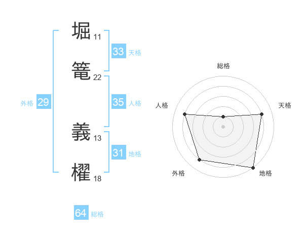 堀篭 義櫂さんの総格は64画の1点!