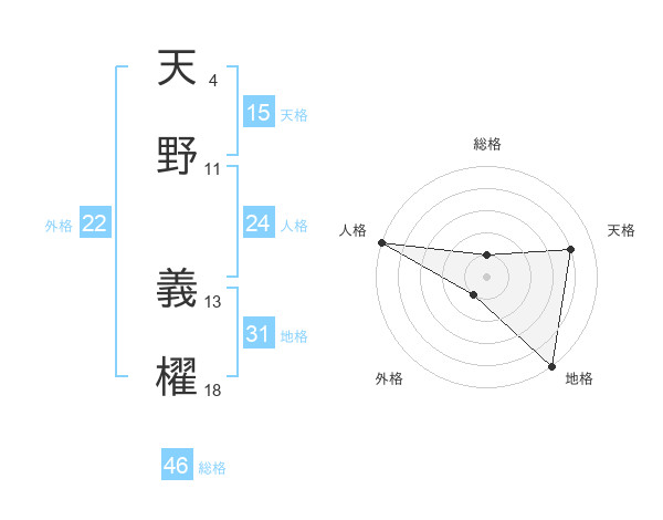 天野 義櫂さんの総格は46画の1点!