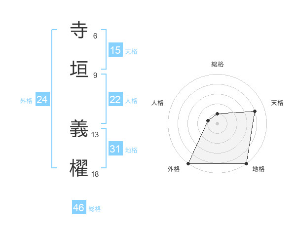 寺垣 義櫂さんの外格は24画の5点!