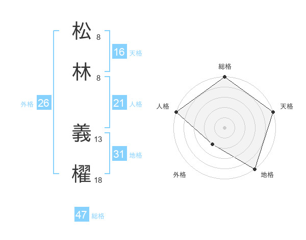 松林 義櫂さんを姓名の画数から五運を鑑定