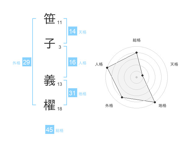 笹子 義櫂さんの総格は45画の4点!