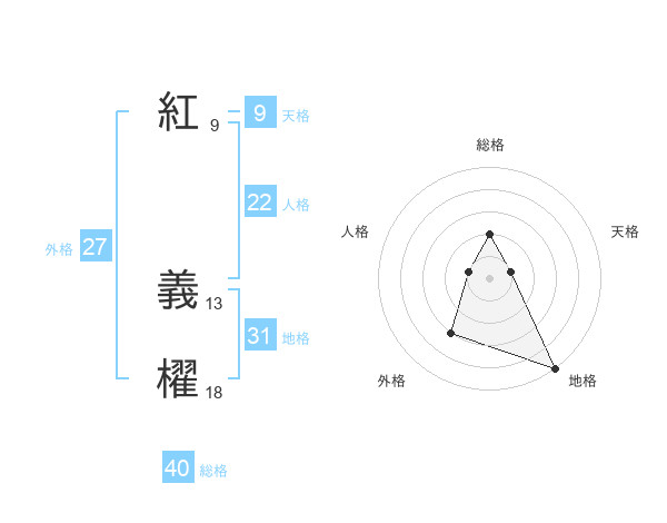 紅 義櫂さんの総格は40画の2点!