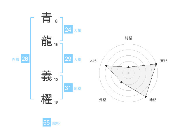 青龍 義櫂さんを姓名の画数から五運を鑑定