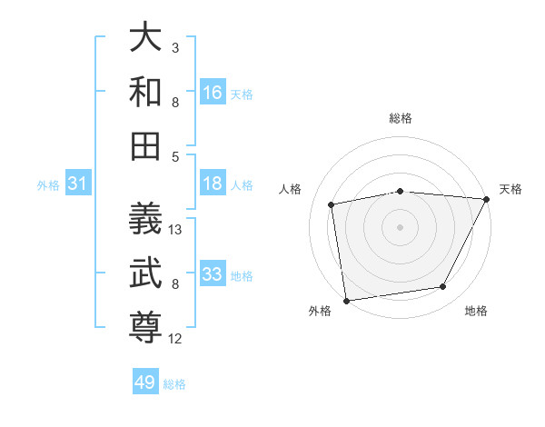 大和田 義武尊さんを姓名の画数から五運を鑑定