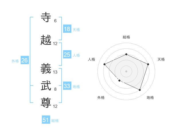 寺越 義武尊さんを姓名の画数から五運を鑑定