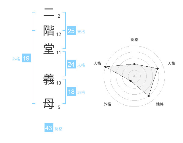 二階堂 義母さんの総格は43画の2点!