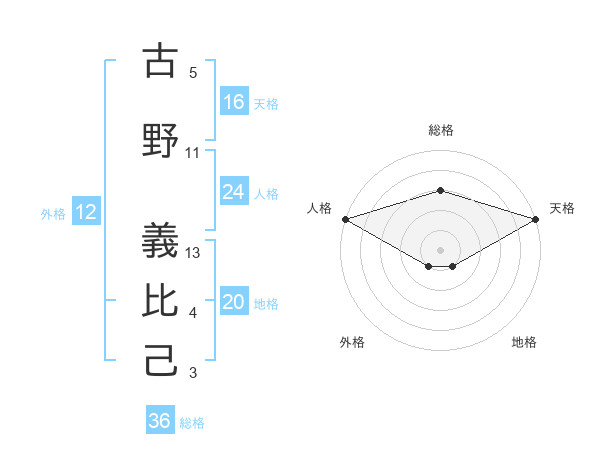 古野 義比己さんの天格は16画の5点!