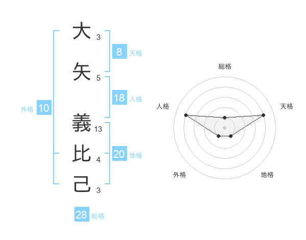 大矢 義比己さんの天格は8画の4点!