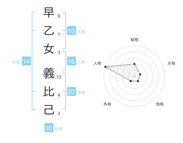 早乙女 義比己さんの総格は30画の2点!