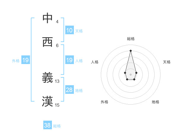 中西 義漢さんの総格は38画の4点!