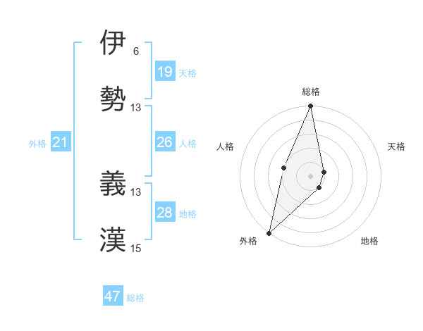 伊勢 義漢さんの総格は47画の5点!