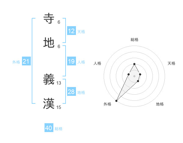 寺地 義漢さんを姓名の画数から五運を鑑定