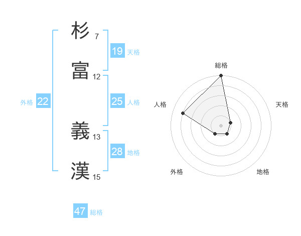 杉富 義漢さんを姓名の画数から五運を鑑定