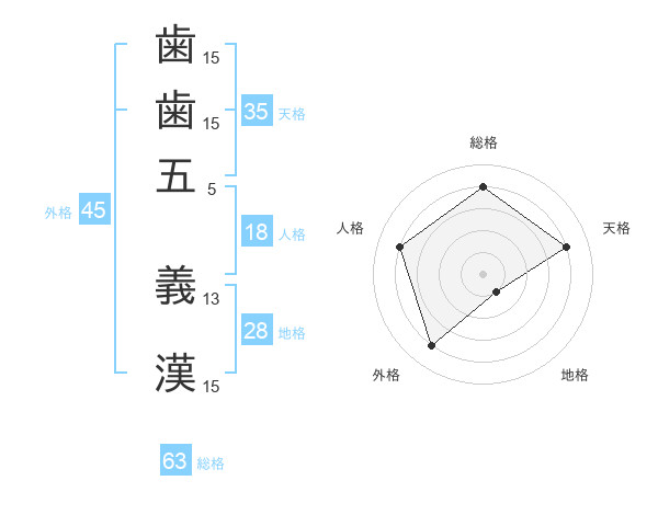 歯歯五 義漢さんを姓名の画数から五運を鑑定