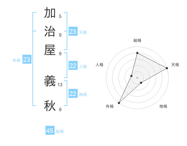 加治屋 義秋さんを姓名の画数から五運を鑑定