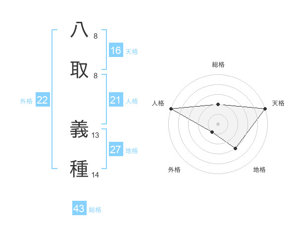 八取 義種さんの天格は16画の5点!