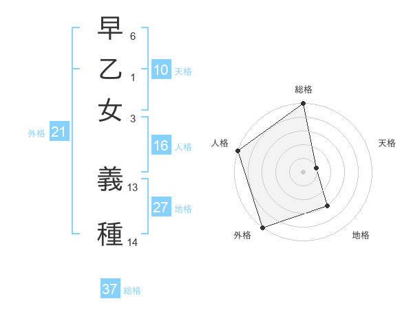 早乙女 義種さんを姓名の画数から五運を鑑定