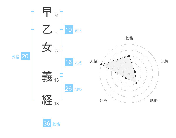 早乙女 義経さんを姓名の画数から五運を鑑定