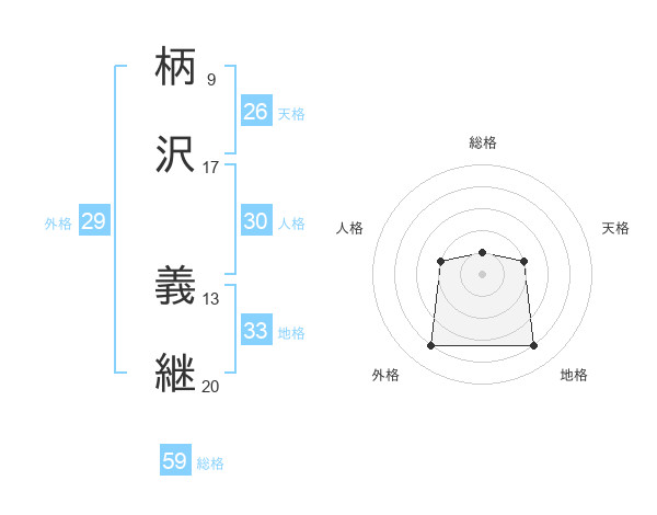柄沢 義継さんを姓名の画数から五運を鑑定