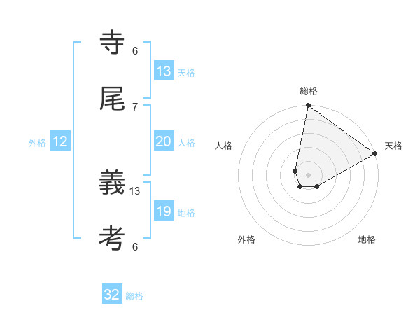 寺尾 義考さんの総格は32画の5点!
