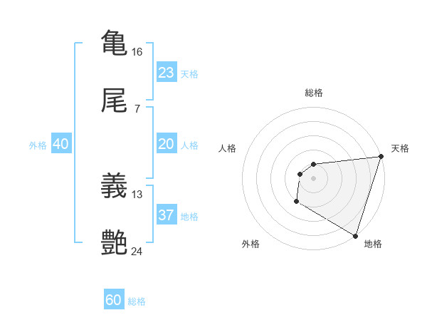 亀尾 義艶さんを姓名の画数から五運を鑑定
