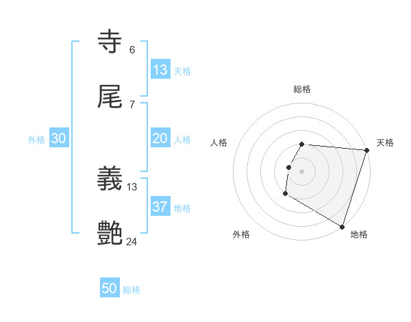 寺尾 義艶さんの天格は13画の5点!