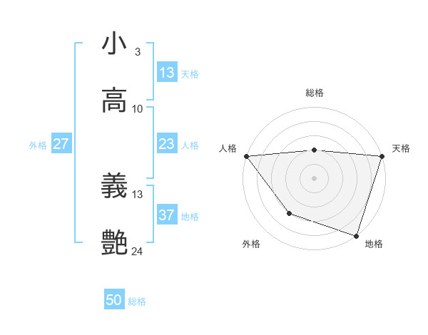 小高 義艶さんの天格は13画の5点!