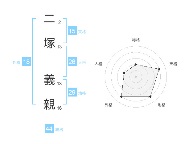 二塚 義親さんを姓名の画数から五運を鑑定
