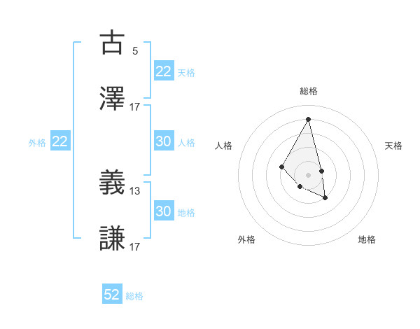 古澤 義謙さんを姓名の画数から五運を鑑定